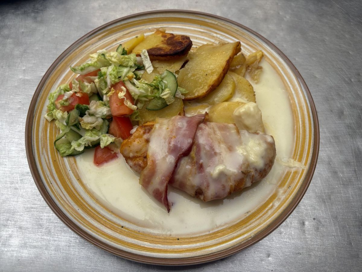 Váha: 140/200g Fried chicken; mashed potatoes; carrot salad