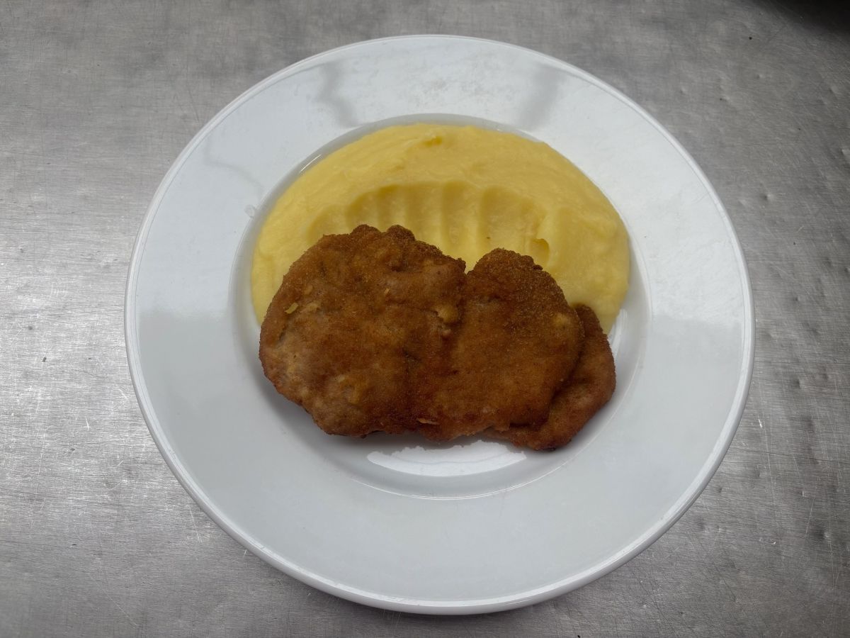 Váha: 140/200 Fried pork cutlet; mashed potatoes; carrot salad