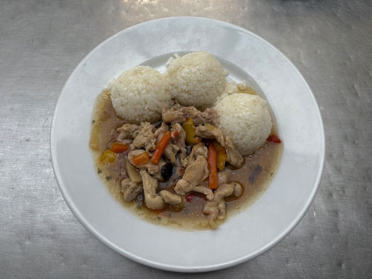 Váha: 140/200g Asian-style chicken sauté, steamed rice, carrot salad