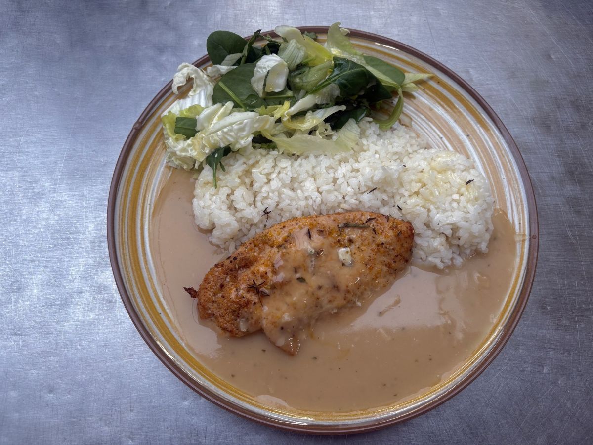 Váha: 140/200g Chicken wing with bull's eye; 1/2 rice 1/2 fries; carrot-celery salad