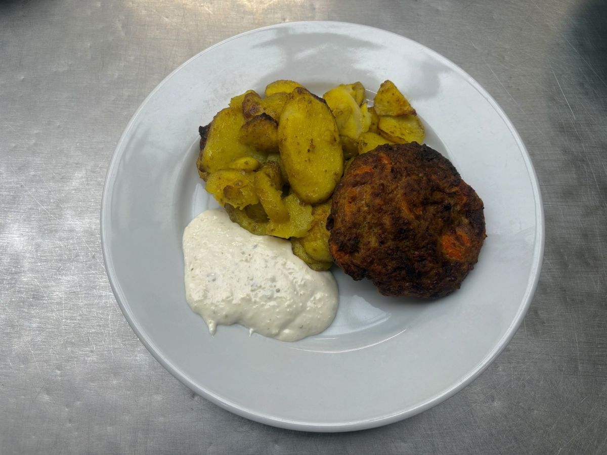 Váha: 150/200g Fried fish fillet; mashed potatoes; carrot and celery salad