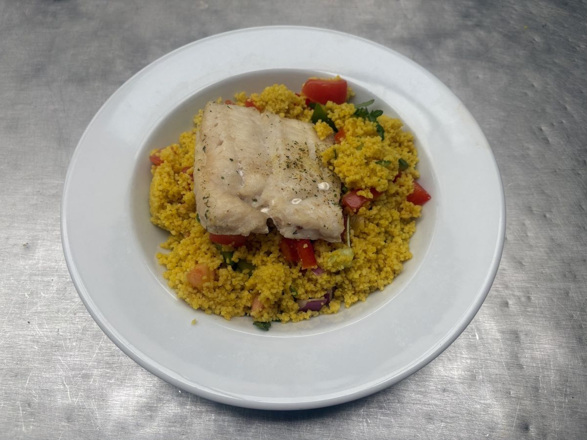 Váha: 380g Piece piece with vegetables; grilled Alaska cod